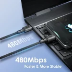 Ce câble de charge permet de charger et de synchroniser simultanément à grande vitesse. Il offre une vitesse de charge rapide jusqu’à 3 A et un débit de transmission de 480 Mbps. Compatible avec les stations de charge multiports et les batteries externes.