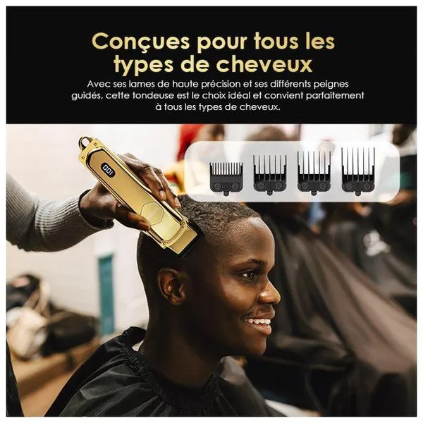 Avec ses lames de haute précision et ses différents peignes guidés, cette tondeuse est le choix idéal et convient parfaitement à tous les types de cheveux.
