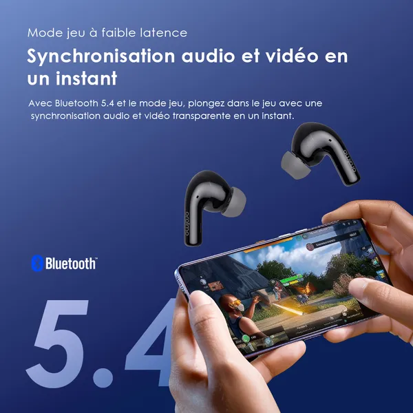 Grâce au Bluetooth 5.4 et au mode jeu, les SpaceBuds Z vous permettent de vous immerger dans le jeu avec une synchronisation audio et vidéo transparente en un instant
