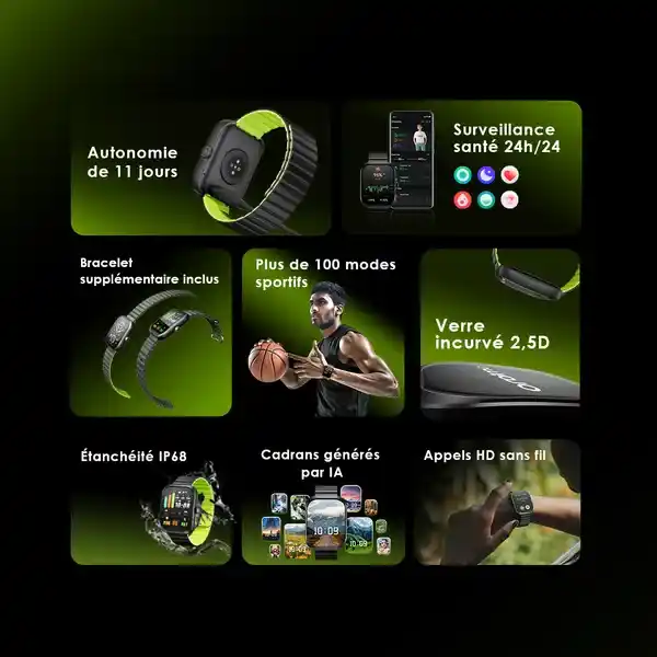 Explorez plus de 100 modes sportifs adaptés à toutes vos activités. Que vous aimiez le vélo, la natation ou le yoga, bénéficiez d’un suivi précis et d’analyses pour rester motivé et performant