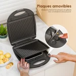 Grandes plaques chauffantes pour 8 sandwiches Puissance de 1200W Grâce à l’élément chauffant de 1200W, la cuisson est rapide et homogène. Appareil 2-en-1 pour sandwichs et grillades Plaques amovibles Retirez facilement les plaques de grillade avec un simple bouton-poussoir. |